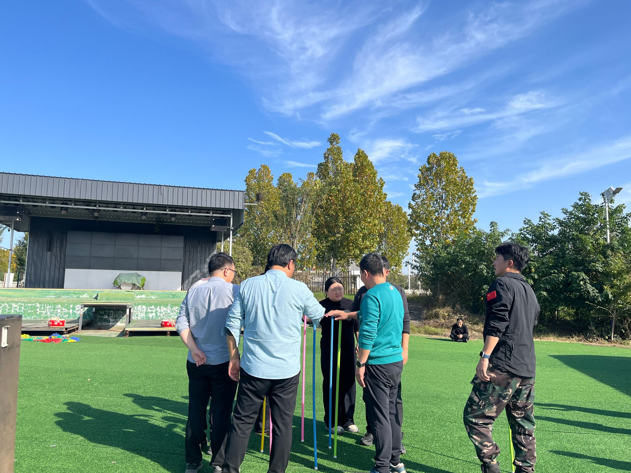 随后,教职工们前往洛阳拓展训练基地开展“团结协作 凝心聚力”主题户外素质拓展活动。在专业教练的指导下,各支队伍先后完成了“教练说”“对撞球”“不倒森林”“同心鼓”“神笔马良”等训练项目。活动中,队员们团结协作、默契配合,既有激烈的思想碰撞,也有温馨的互助瞬间。在"同心鼓"项目中,队员们默契配合,精准控制鼓面节奏;在"神笔马良"环节,大家齐心协力,共同书写育人篇章;"不倒森林"考验着团队的协调一致,"对撞球"则展现出教师们的活力与激情。活动现场气氛热烈,欢声笑语此起彼伏,在秋日暖阳下勾勒出一幅生动和谐的团队画卷。