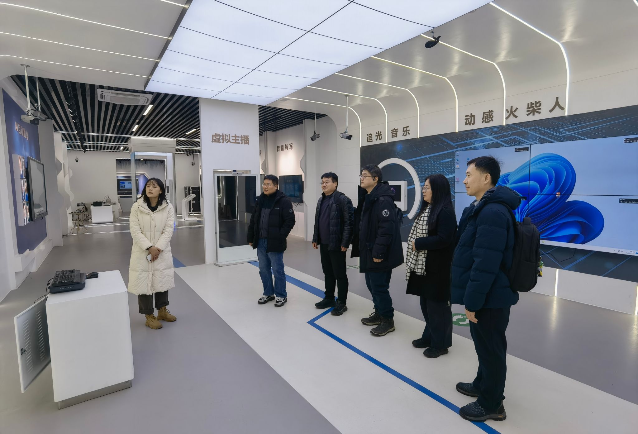 相关负责人的陪同下,调研团队先后参观了学院实验中心、超算中心和河南工业大学人工智能认知厅。科大讯飞代表王丛丛担任讲解员,通过生动详实的讲解和现场演示,详细介绍了各平台的建设理念、硬件设施、功能定位及在教学科研、人才培养中的应用成效。