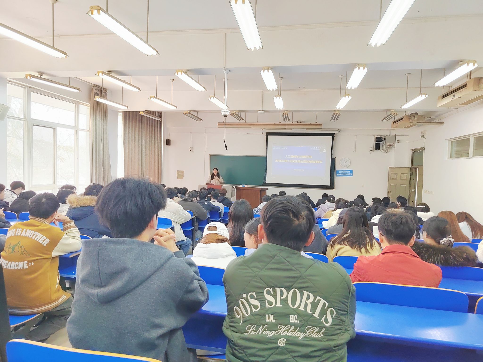随后,朱春华作为主讲嘉宾,按照清晰的逻辑框架展开核心指导。她首先围绕报考院校专业复试与调剂展开讲解,结合人工智能、大数据、软件工程领域的招生特点,详细梳理了院校信息搜集渠道、专业匹配原则、调剂流程及注意事项,指导学生如何精准筛选目标院校、把握调剂窗口期,为后续升学做好预案。在复试录取宝典讲解模块,她从复试流程、专业课复习重点、综合面试技巧、英文自我介绍、个人简历打磨等方面进行细致拆解,尤其针对学院学科特色,强调了在复试中展现数据思维、项目实践能力与科研潜力的重要性,帮助同学们明确备考方向、补齐能力短板。最后,她结合学院考研数据分析,用详实的历年录取数据为同学们剖析了考研整体形势、分数段分布及上岸规律,让大家对自身定位和竞争态势有了更清晰的认知。